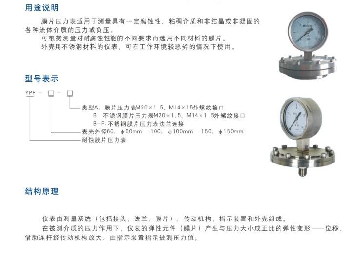 YPF系列膜片压力表