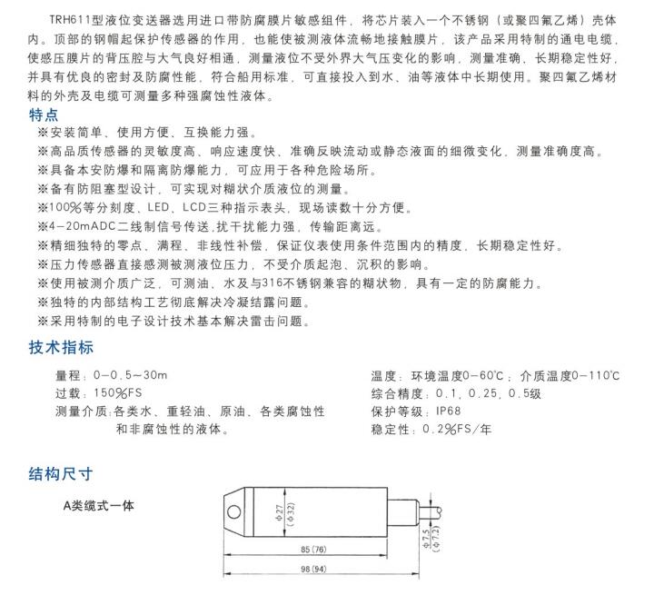 TRH611型液位变送器