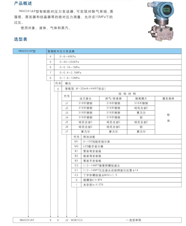 TRH3351AP型智能绝对压力变送器