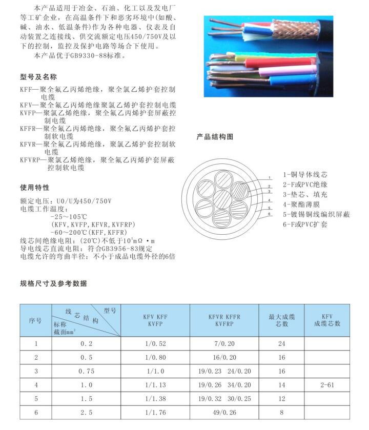 耐高温氟塑料安装线及电缆