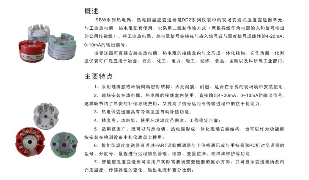 SBW系列温度变送器