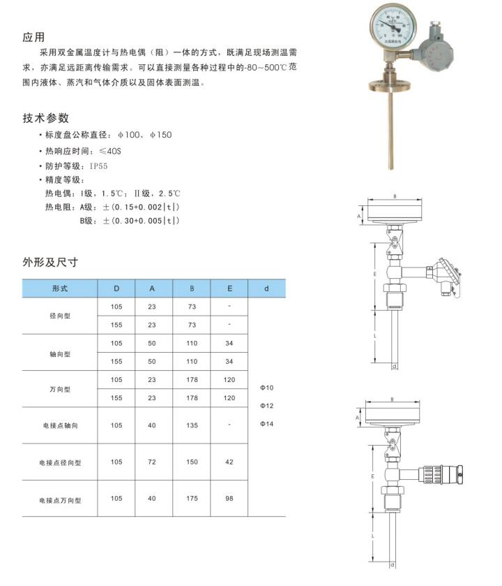 带热电偶(阻)双金属温度计