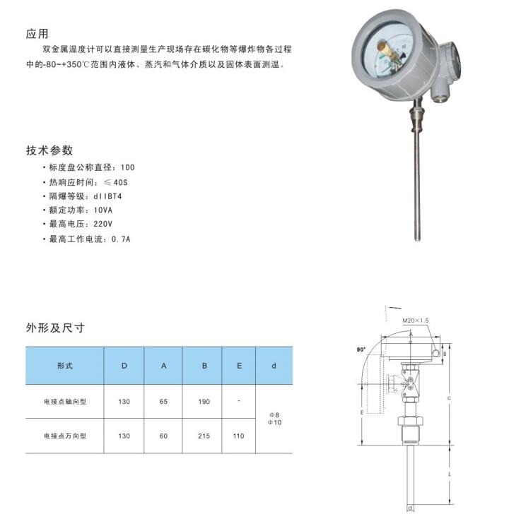 隔爆双金属温度计