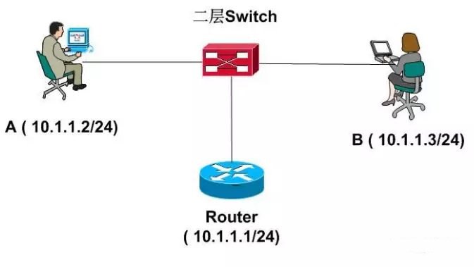 同一个vlan中,A与B,这一过程完全可以在二层交换机进行,不需要路由器的参与。