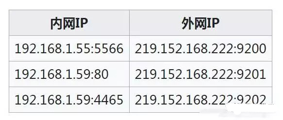 一般普遍使用是端口映射的方式,NAT的核心是一张映射表(源IP地址,源端口,目的IP地址,目的端口),将内网源IP地址和端口映射到同一个公网地址的不同端口,如下图所示。
